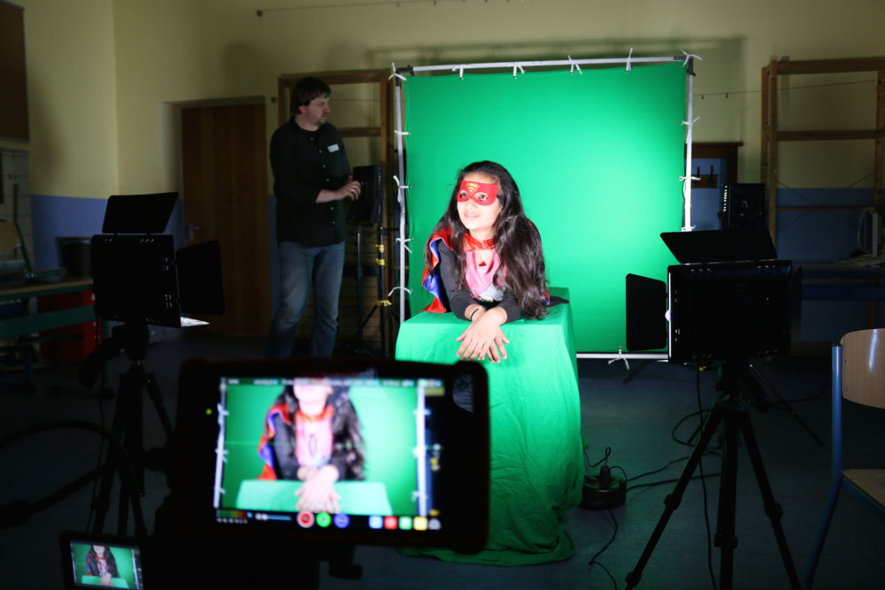 Diese Technik ist nicht neu, bereits im Jahr 1933 wurde sie im Filmklassiker „King Kong“ benutzt. Seitdem wird sie in vielen Filmen verwendet, vor allem um aufwändige Kulissen zu vermeiden, aber auch in alltäglichen Sendungen wie Nachrichtensendungen nimmt der Greenscreen eine wichtige Rolle ein. Doch warum überhaupt grün? Das und noch viel mehr lernten unsere Mädels!