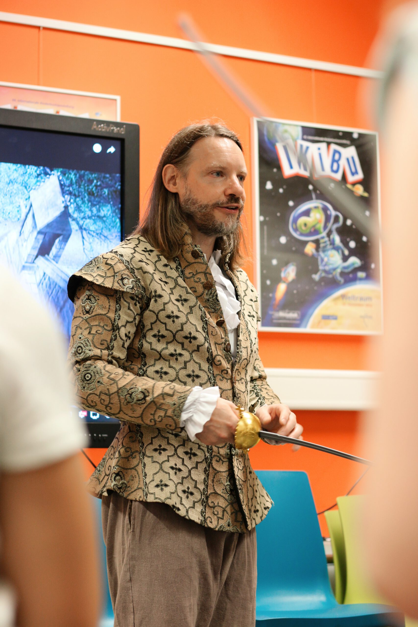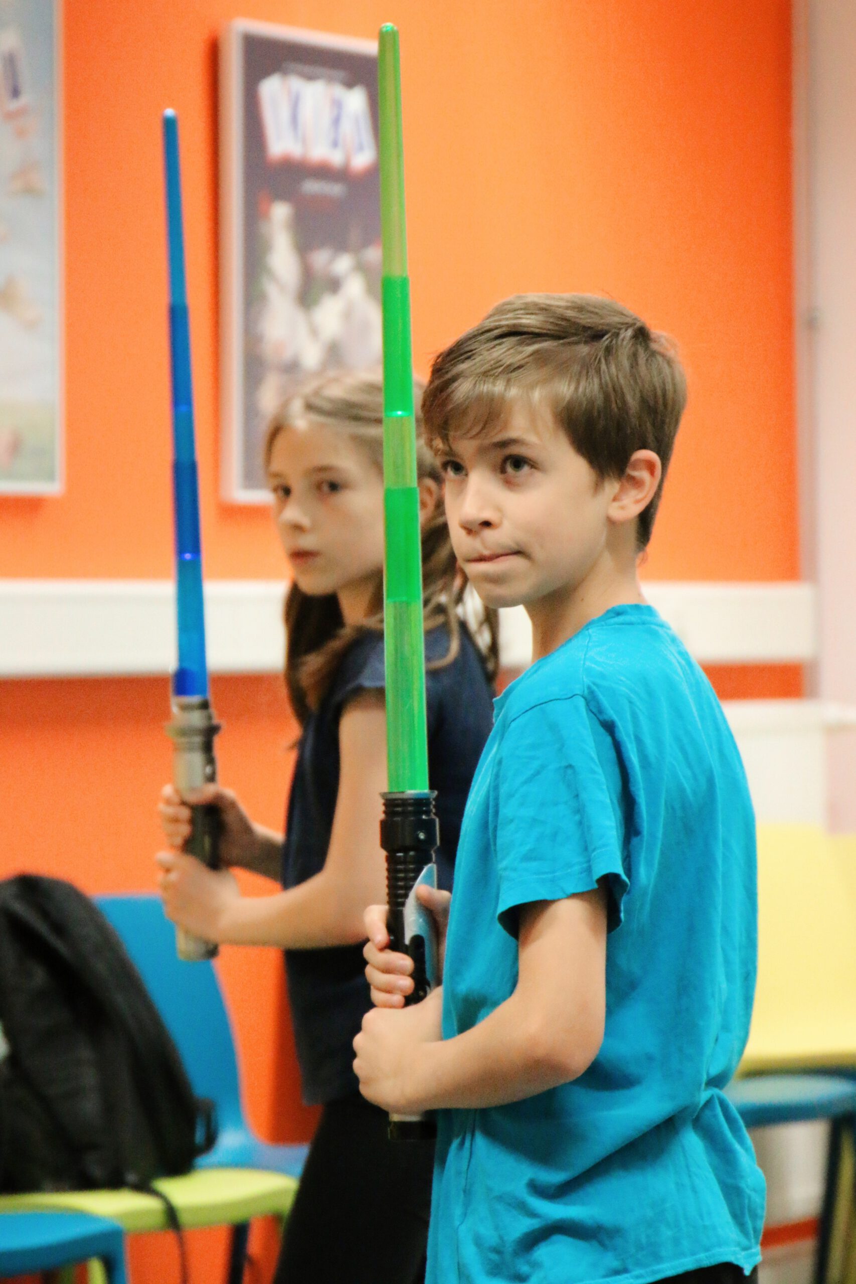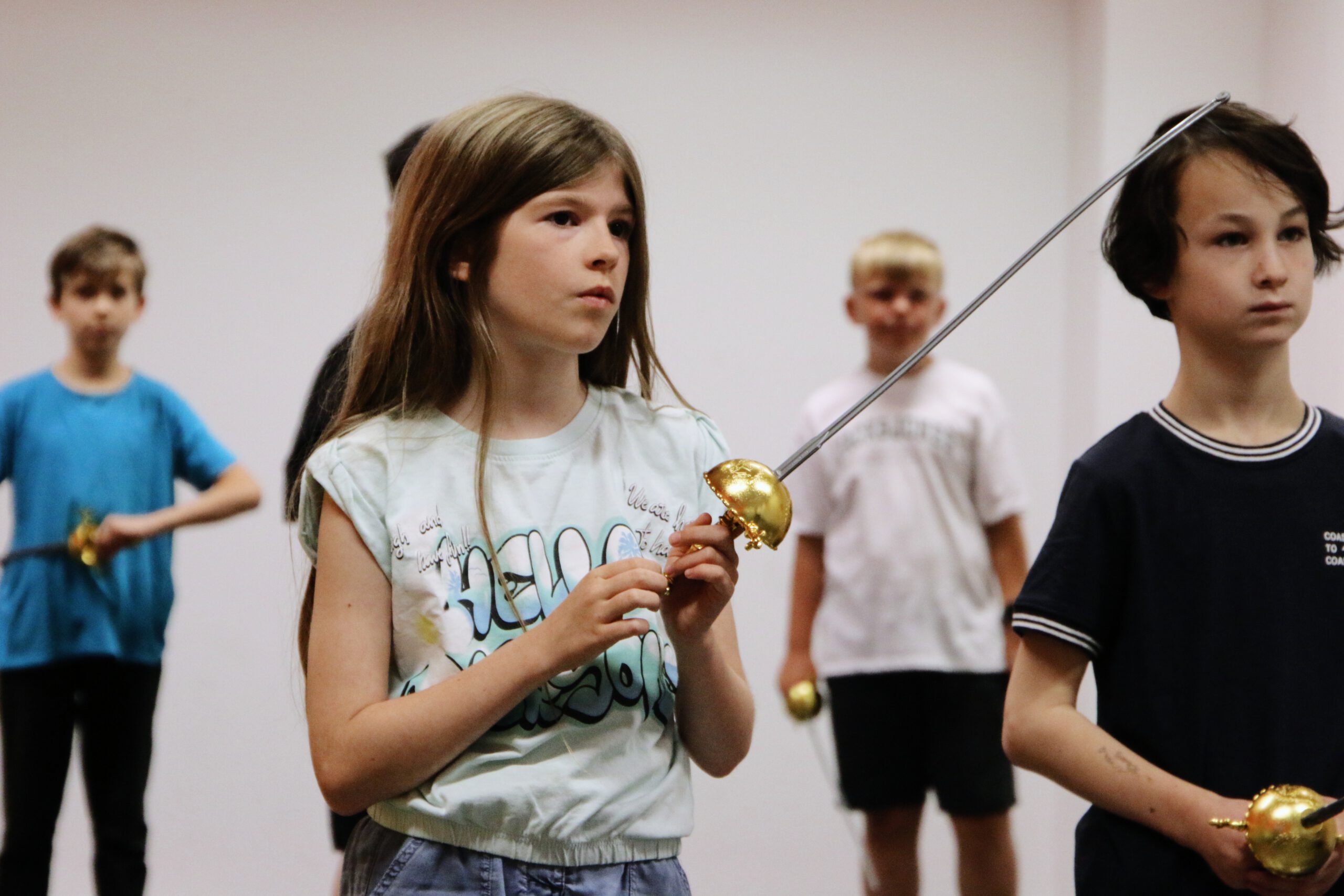 Unter der Leitung von Fechttrainer Olaf Küppers und Schauspielerin Sunny Bansemer lernten die Teilnehmenden die Grundlagen des sicheren Schwertkampfs – ob mit Lichtschwert wie ein Jedi oder mit Degen wie ein Musketier. Nach intensiven Übungseinheiten entwickelten die jungen Teilnehmer eigene Kampf-Choreografien, die sie anschließend mit dem Smartphone filmisch in Szene setzten.