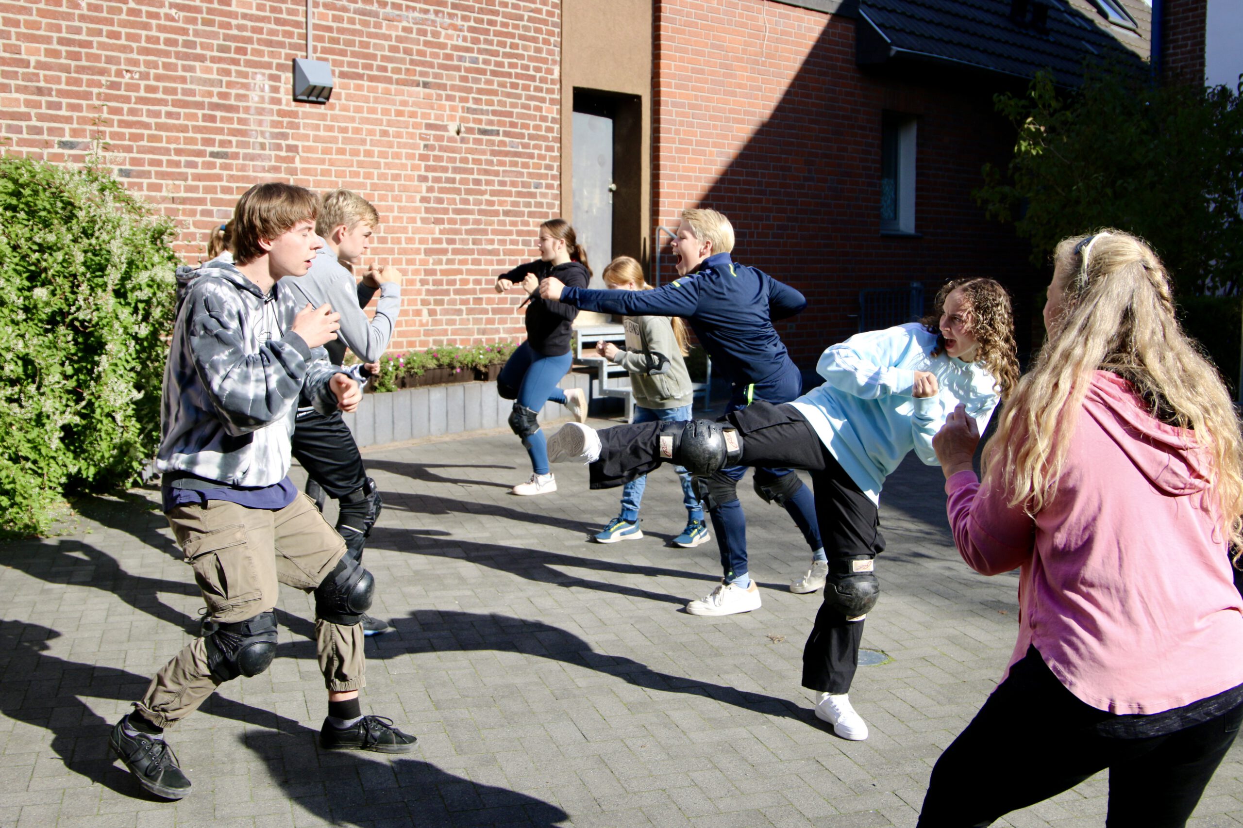 Was im Film total spontan und leicht aussieht, ist in Wirklichkeit bis ins kleinste Detail durchchoreographiert und tagelang trainiert. Im Stunt-Schnupper-Workshop im Katholischen Kinder- und Jugendtreff Piet 8 in Nettetal haben die Kinder & Jugendlichen im Rahmen des Herbstferienprogramms gemeinsam mit Profi-Stuntfrau Tanja de Wendt genau solche Kampf-Choreographien erarbeitet.