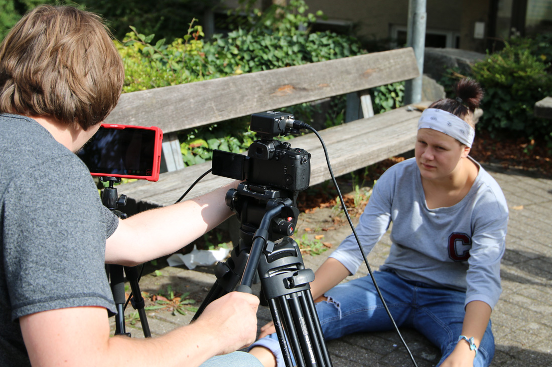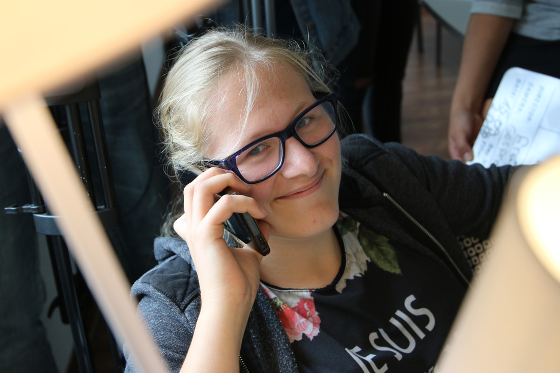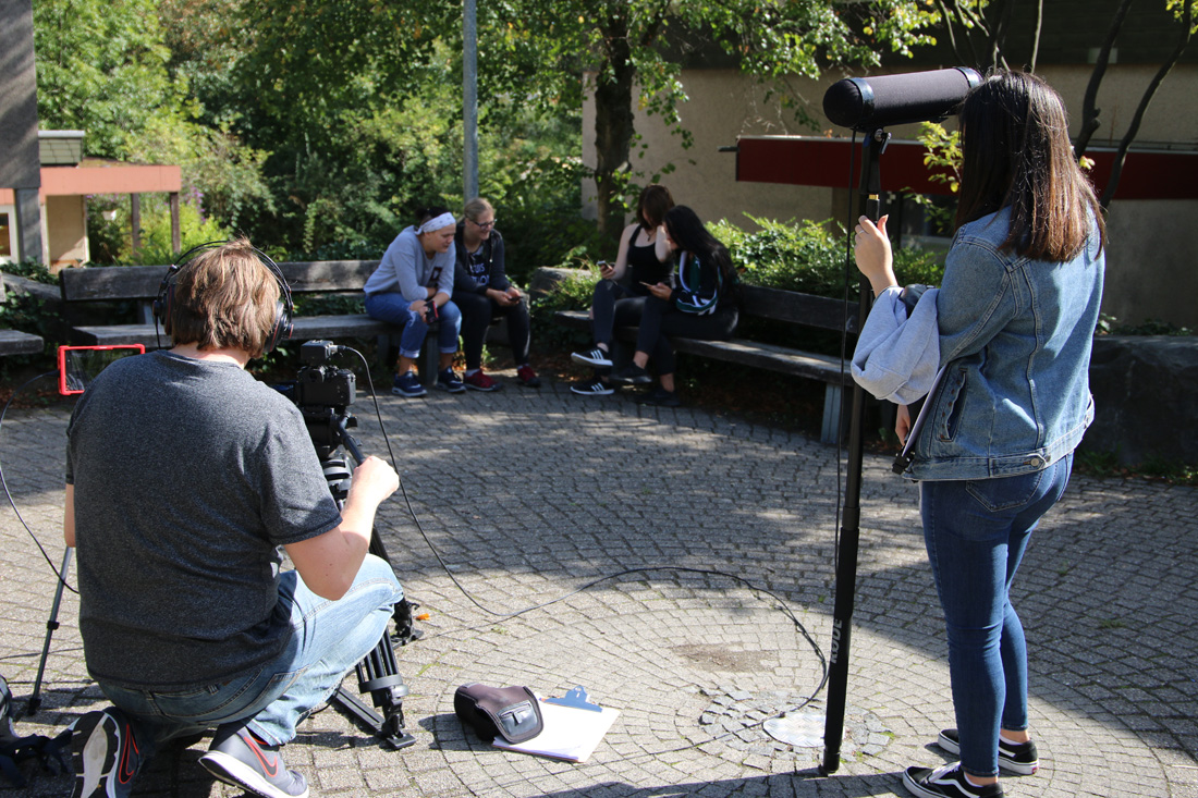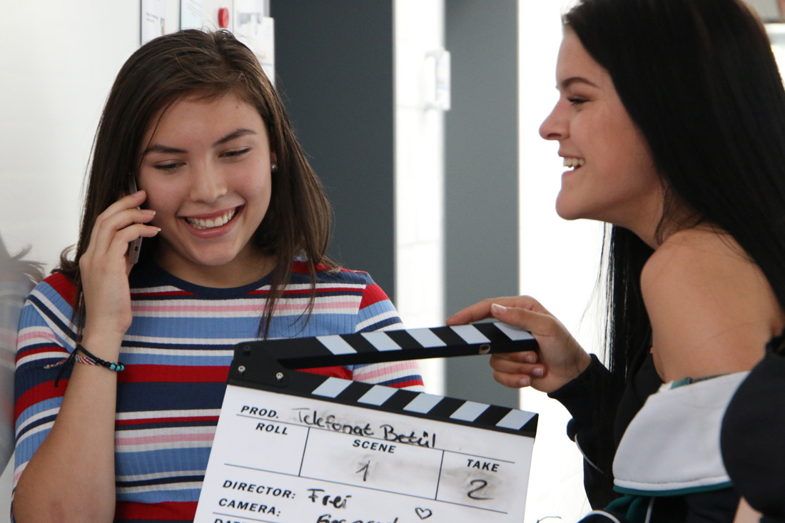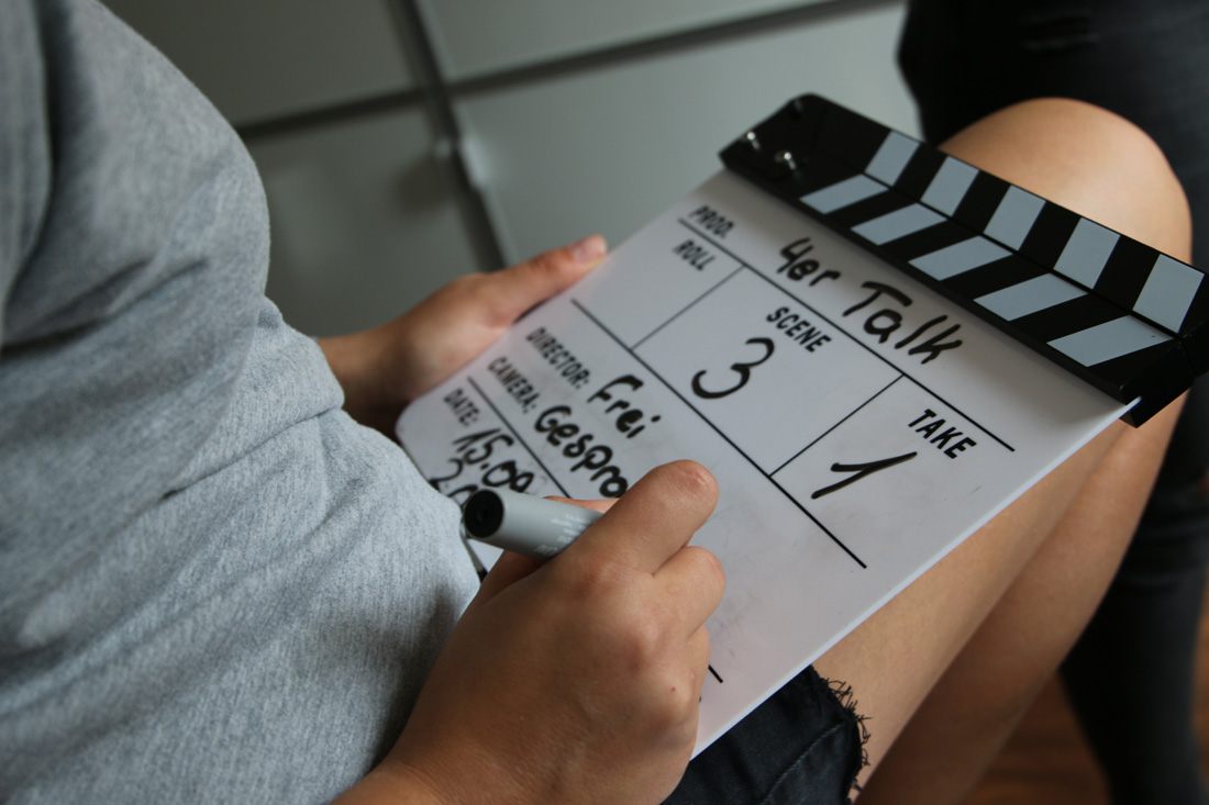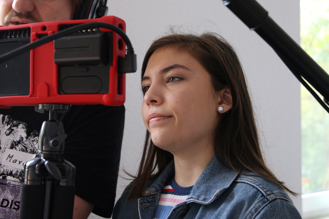 Am 2. Workshop- Wochenende stand nach einem intensiven Stimm- & Schauspieltraining von Coach Sunny Bansemer gleich eine weitere Herausforderung an: Ein recht lange Telefonszene mit vier Gesprächsteilnehmern im Bild. Das erforderte große Disziplin,Timing und Textsicherheit. Wie schnell die Szenen im Kasten waren hat uns überrascht! Es ist wirklich immer wieder toll zu erleben, was man mit motivierten und medienaffinen Kursteilnehmern erreichen kann!