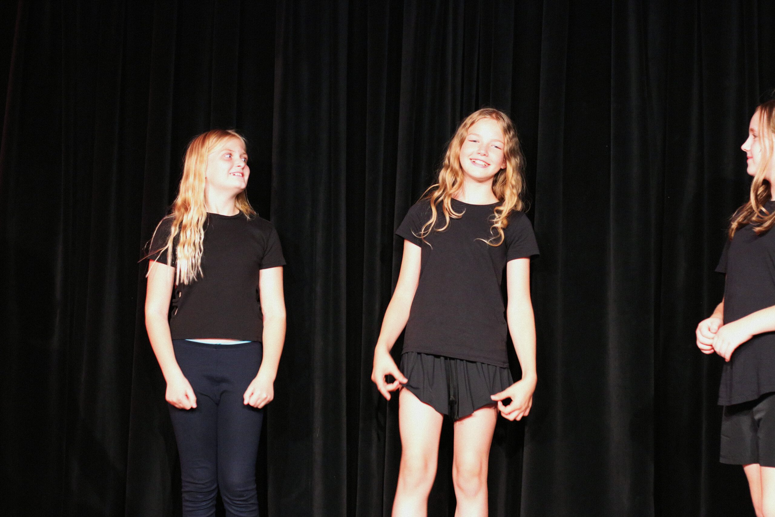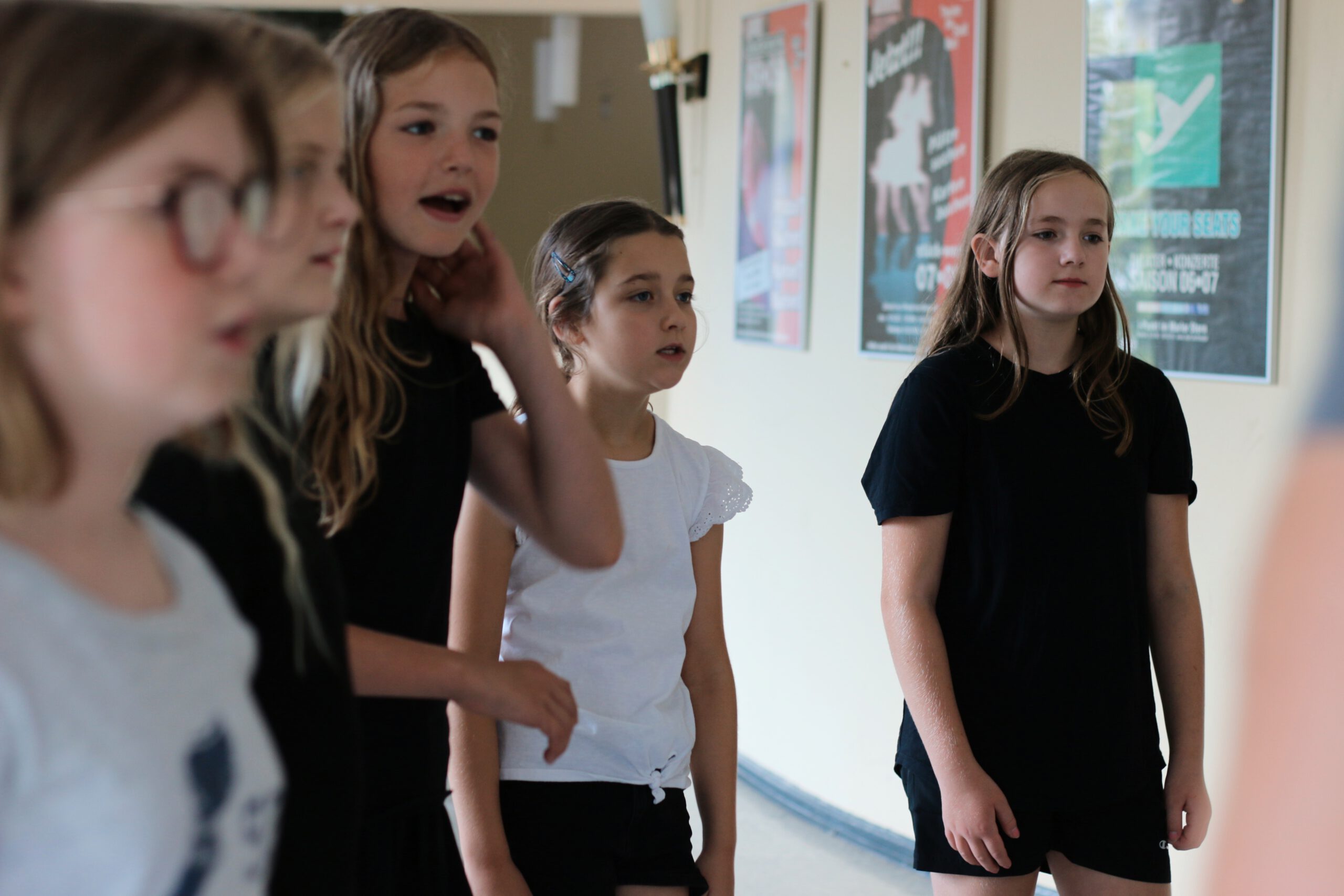 SchauspielworkshopTheaterworkshopKinder bereiten sich hinter der Bühne auf ihre Theaterprobe im Workshop „SPIEL DEIN STÜCK!“ vor.