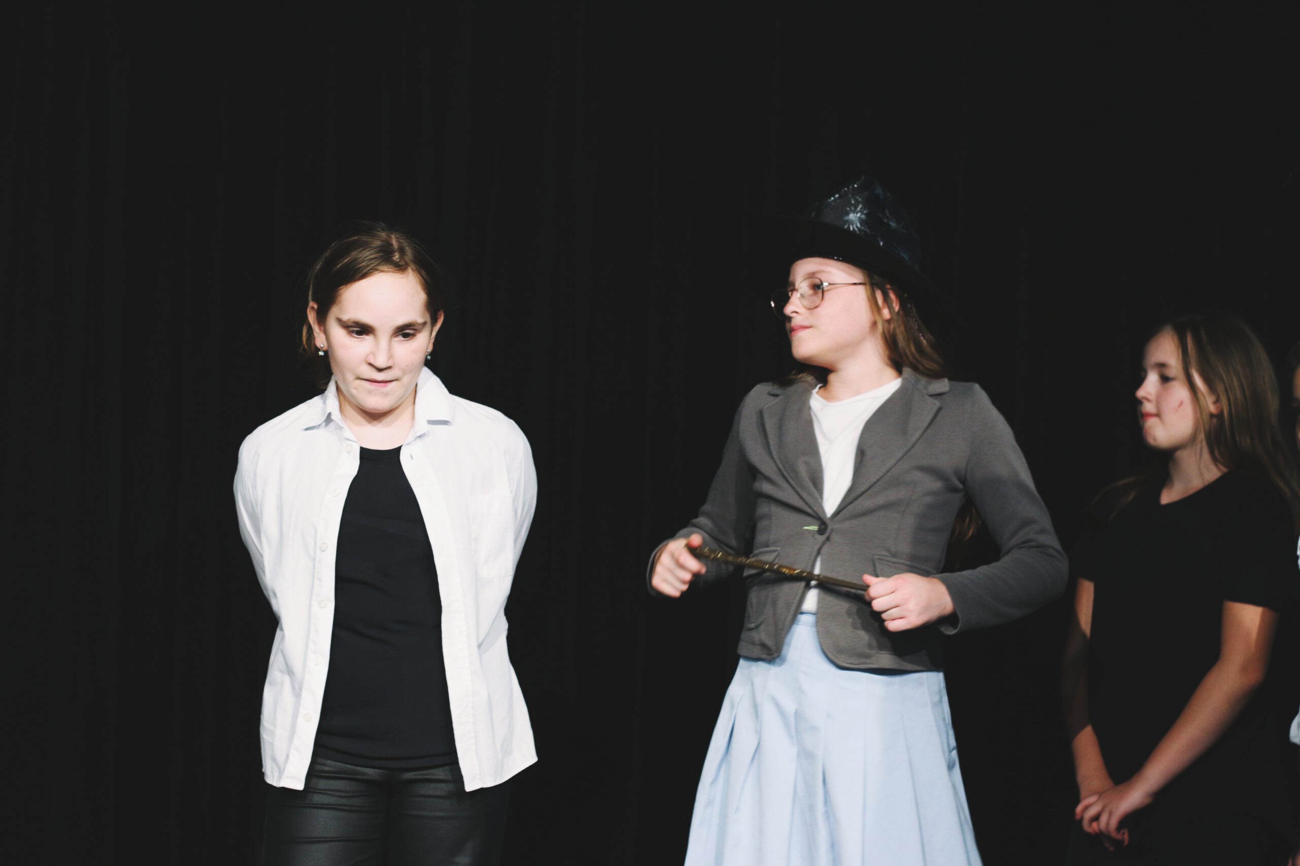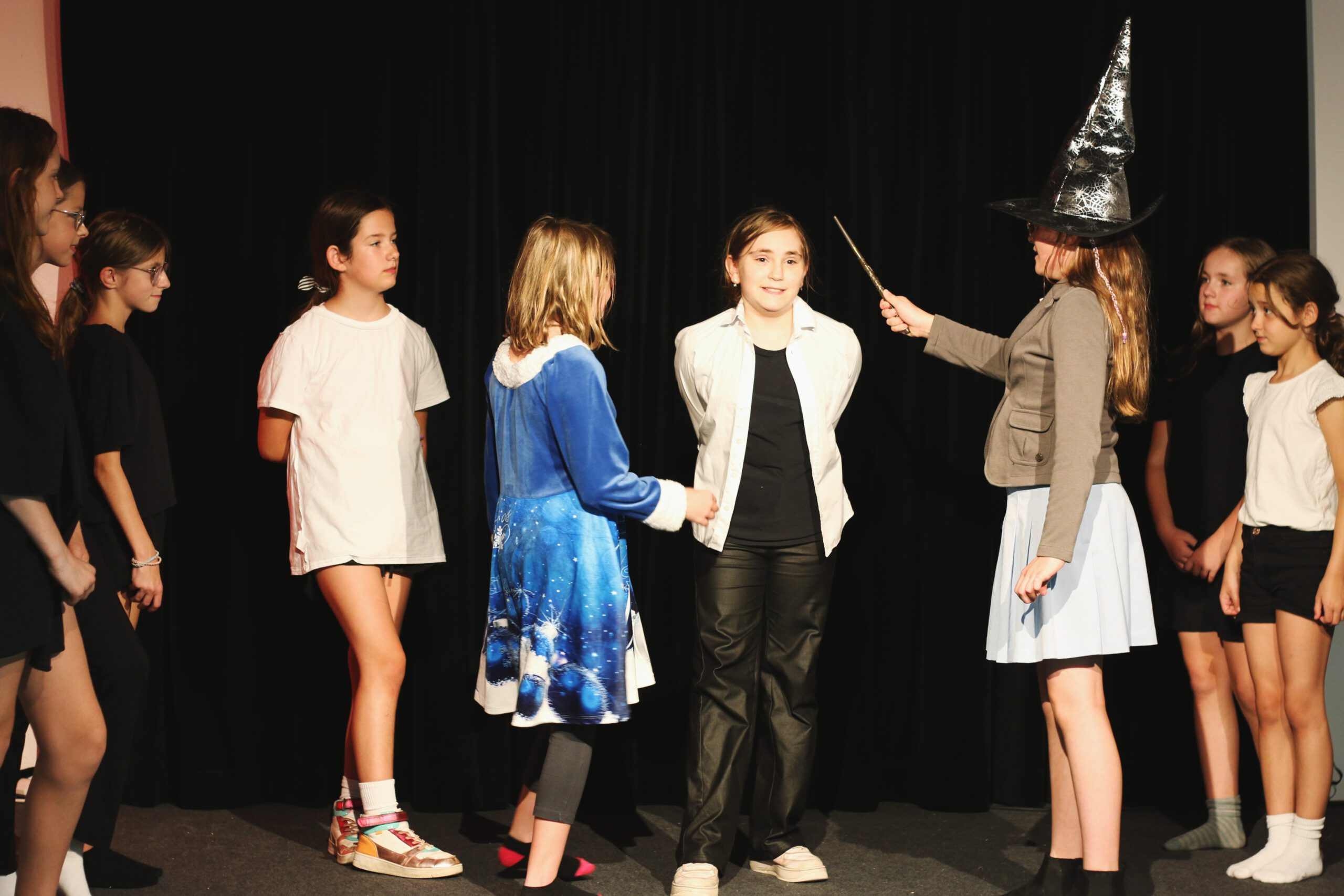 Die Teilnehmerinnen probierten aus, wie es ist, auf der Bühne zu stehen, in verschiedene Rollen zu schlüpfen und eigene Geschichten lebendig werden zu lassen. Über Improvisationen und Schauspielübungen entstanden Figuren, Orte und Situationen, die schließlich zu einem spannenden Theaterstück zusammenwuchsen. Mal laut, mal leise, mit Worten oder ganz ohne Sprache – die Jugendlichen entdeckten, wie vielseitig Theater sein kann.